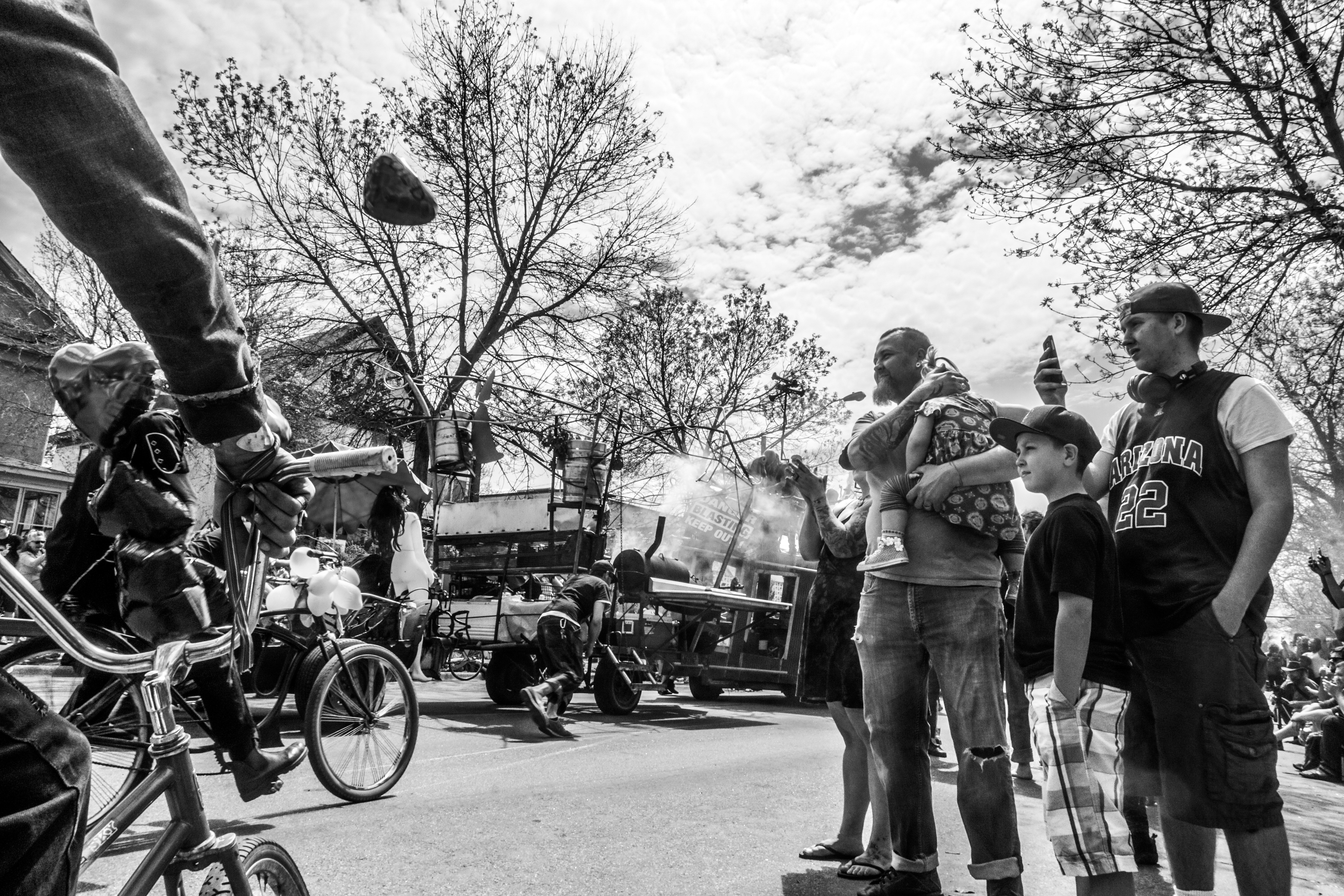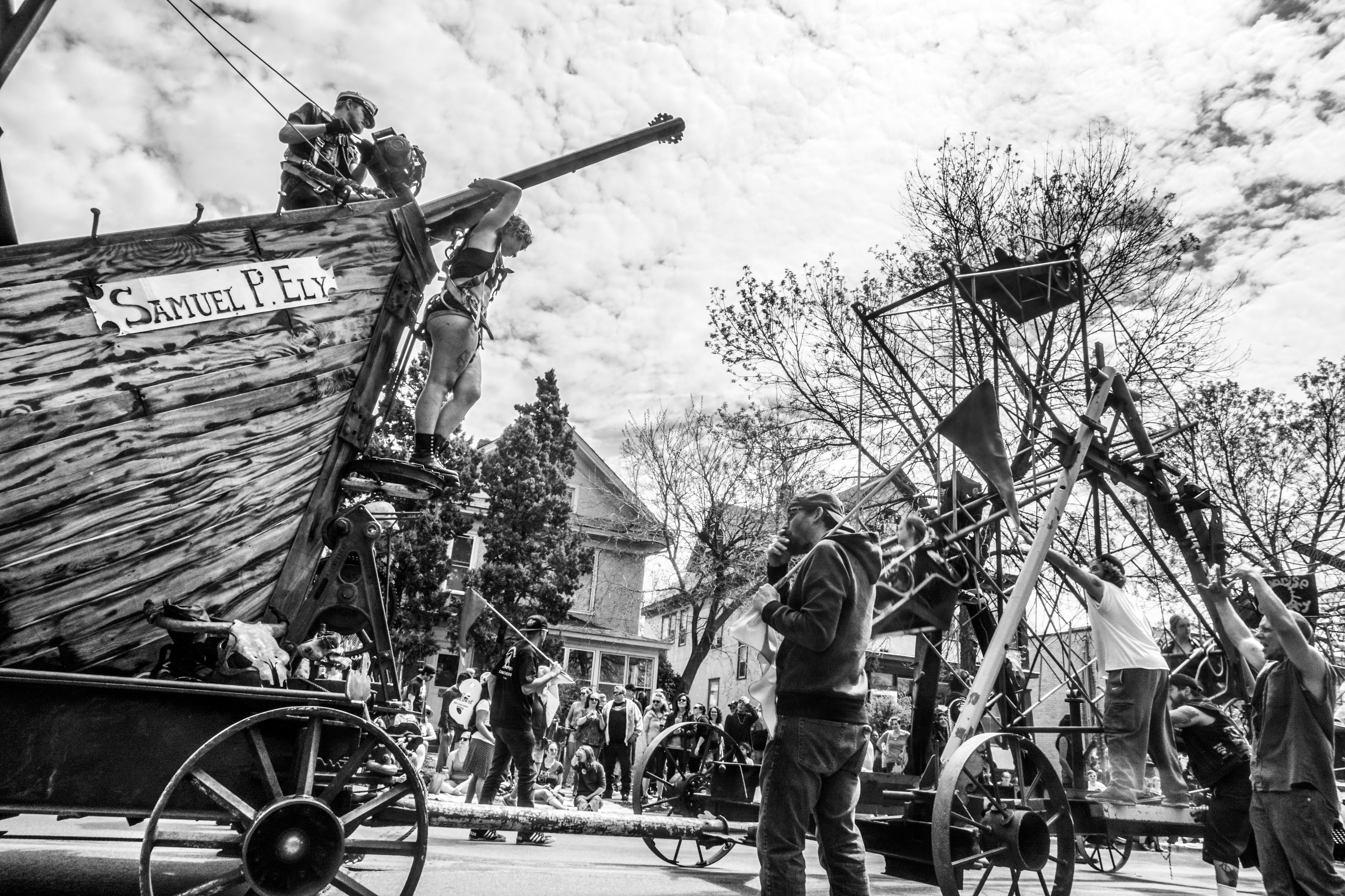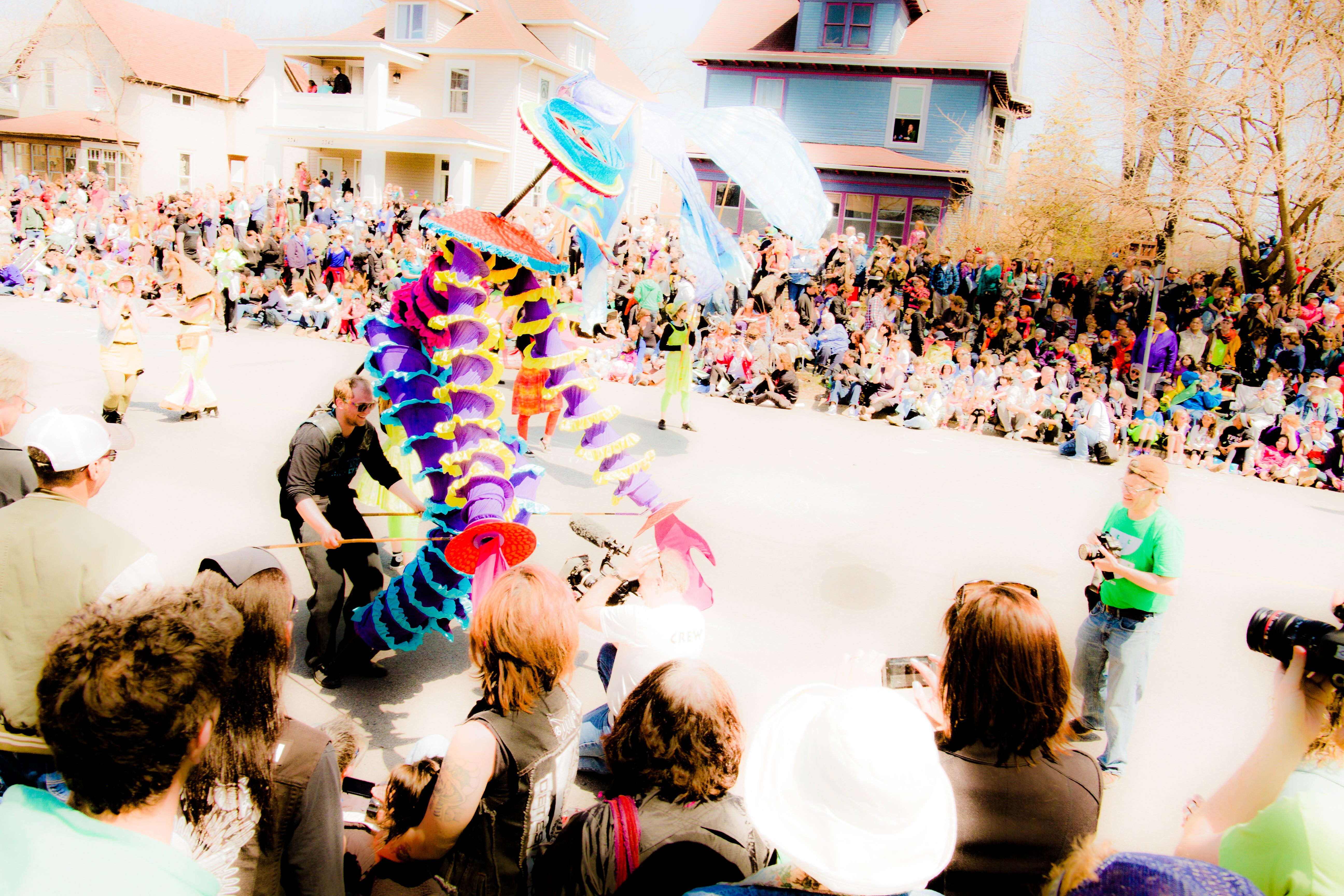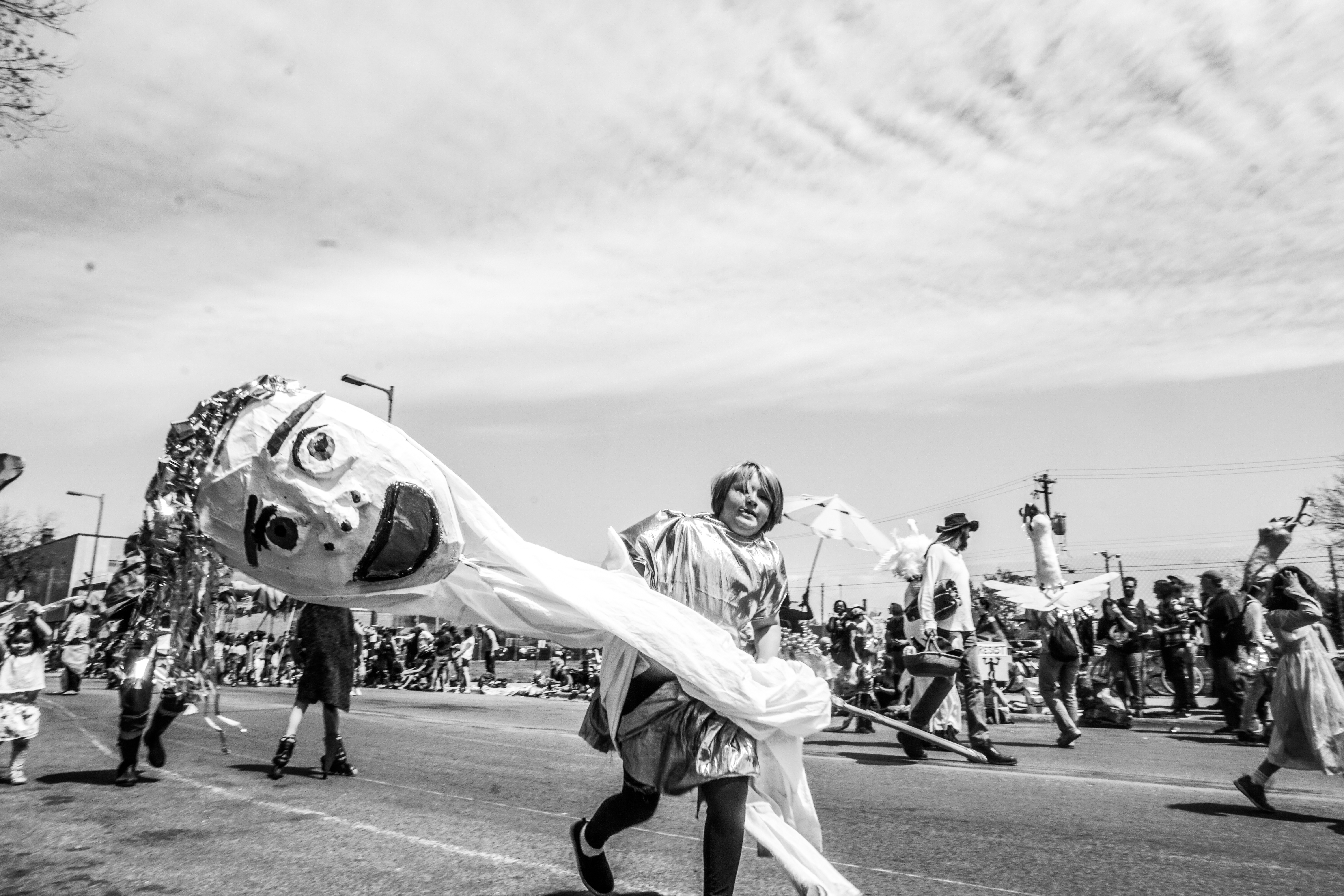 You will see some galleries below of photos from each year’s MayDay parade. One thing you will probably notice is that although these photos are capturing the social messages and the getting together of the local community, they also focus on specific individuals, the role they play as part of the parade, and their interactions with others in their immediate surroundings.