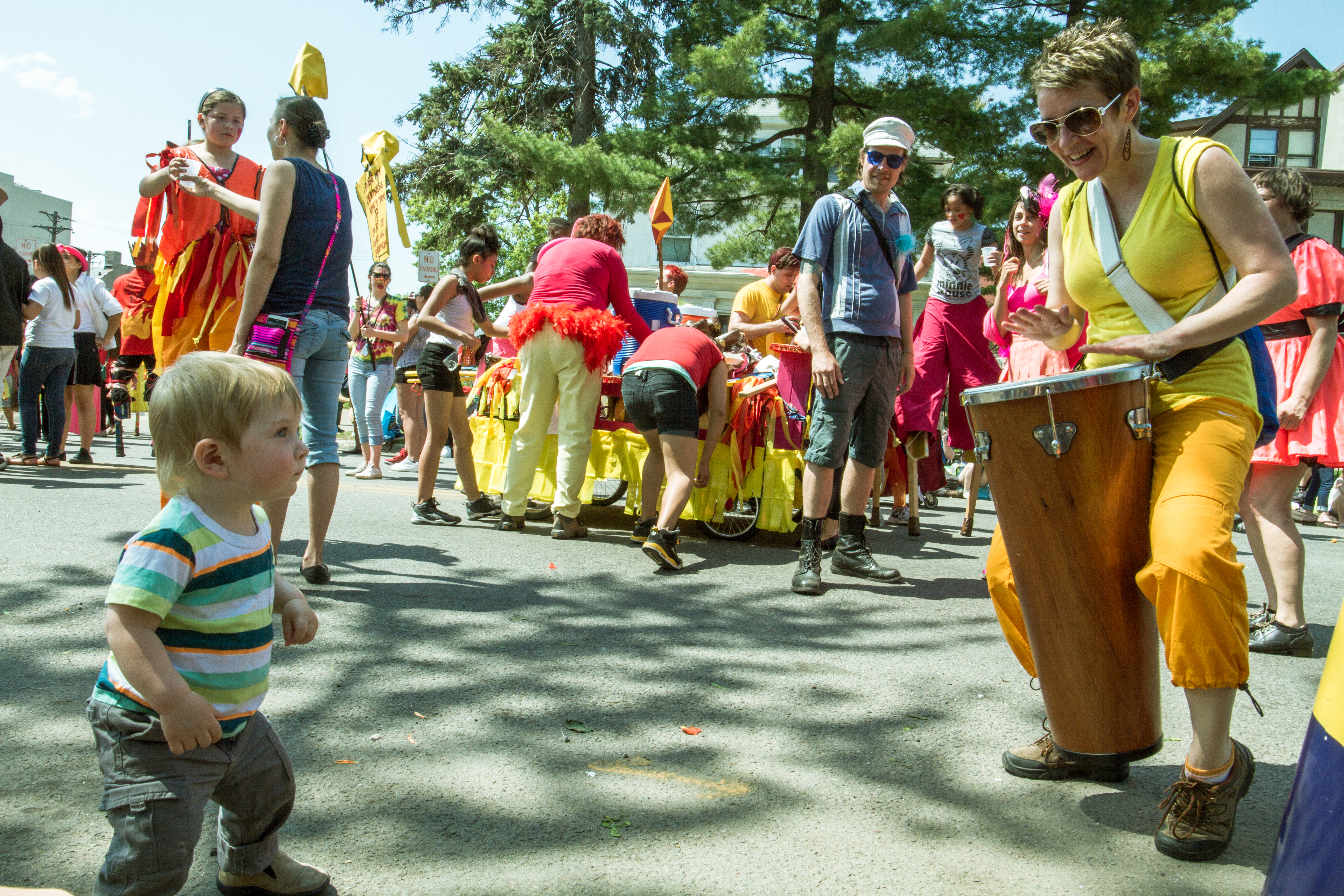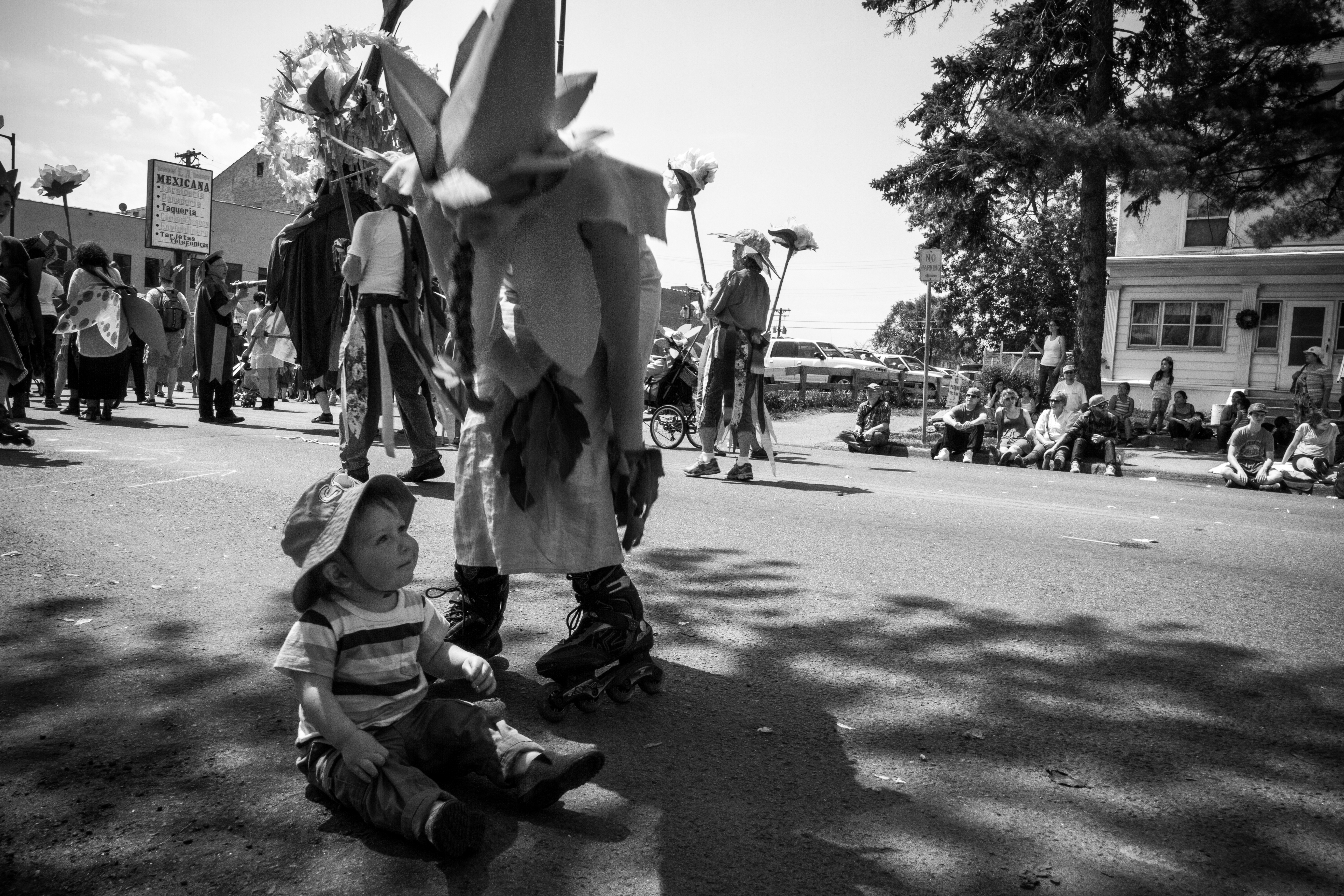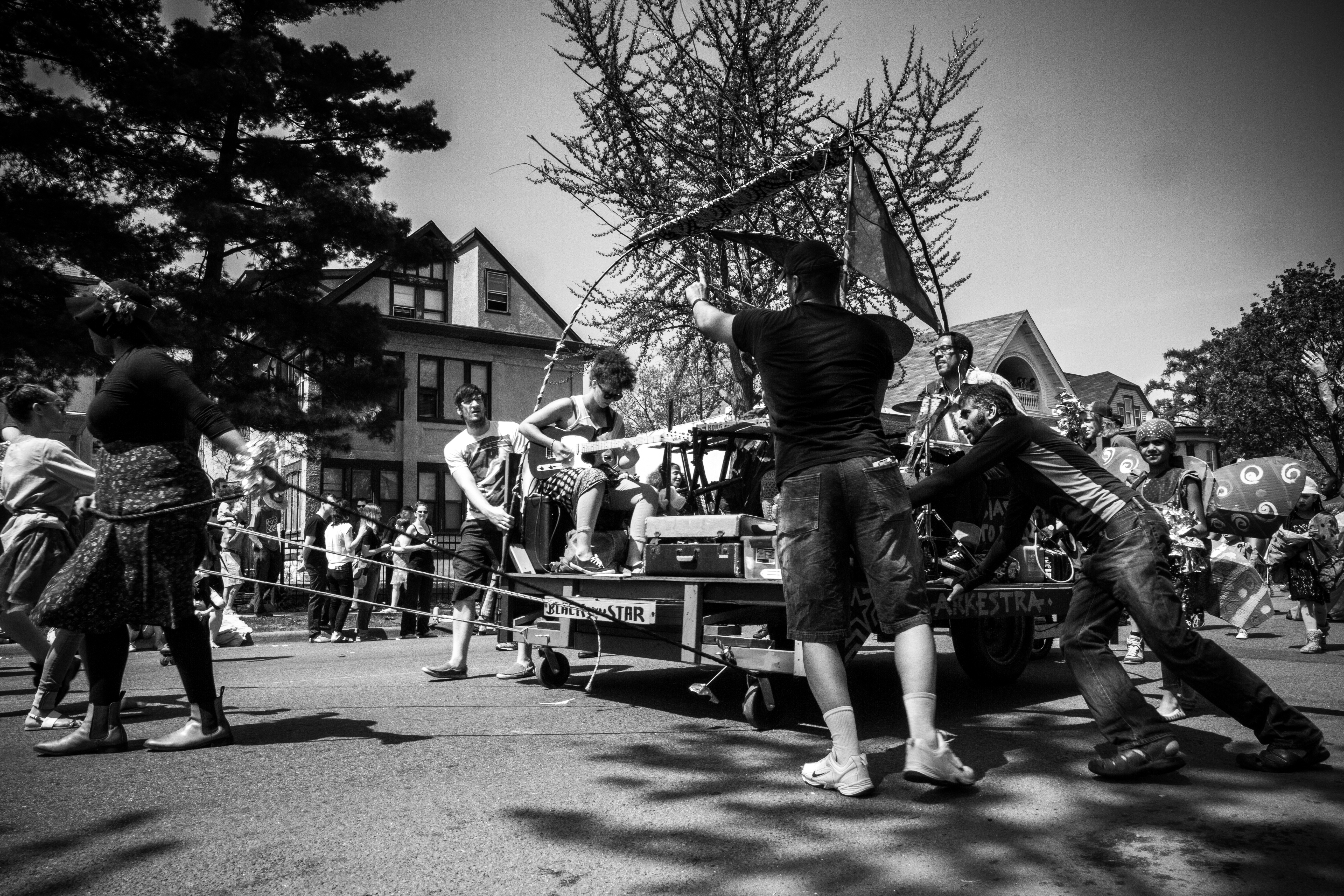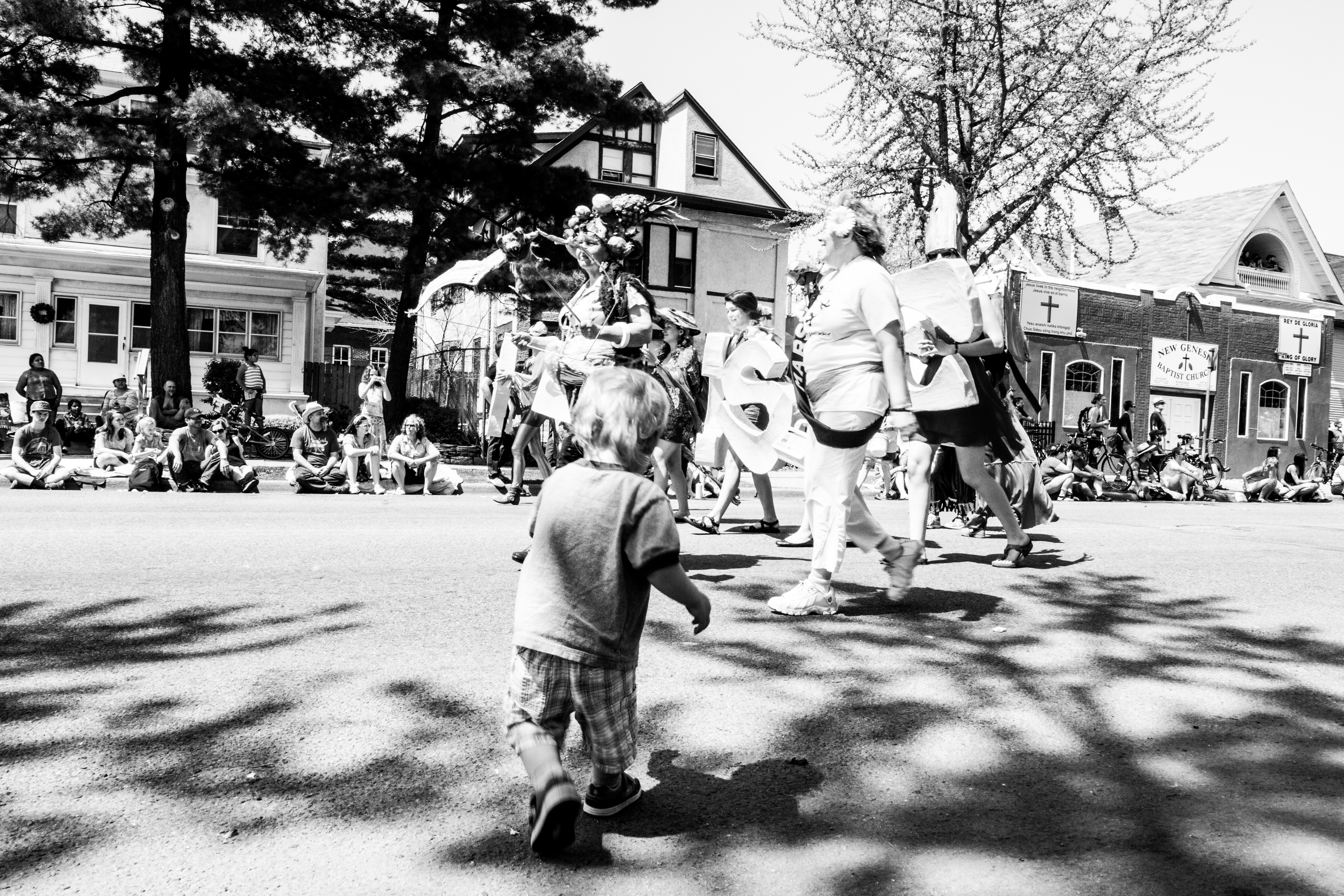 You will see some galleries below of photos from each year’s MayDay parade. One thing you will probably notice is that although these photos are capturing the social messages and the getting together of the local community, they also focus on specific individuals, the role they play as part of the parade, and their interactions with others in their immediate surroundings.
