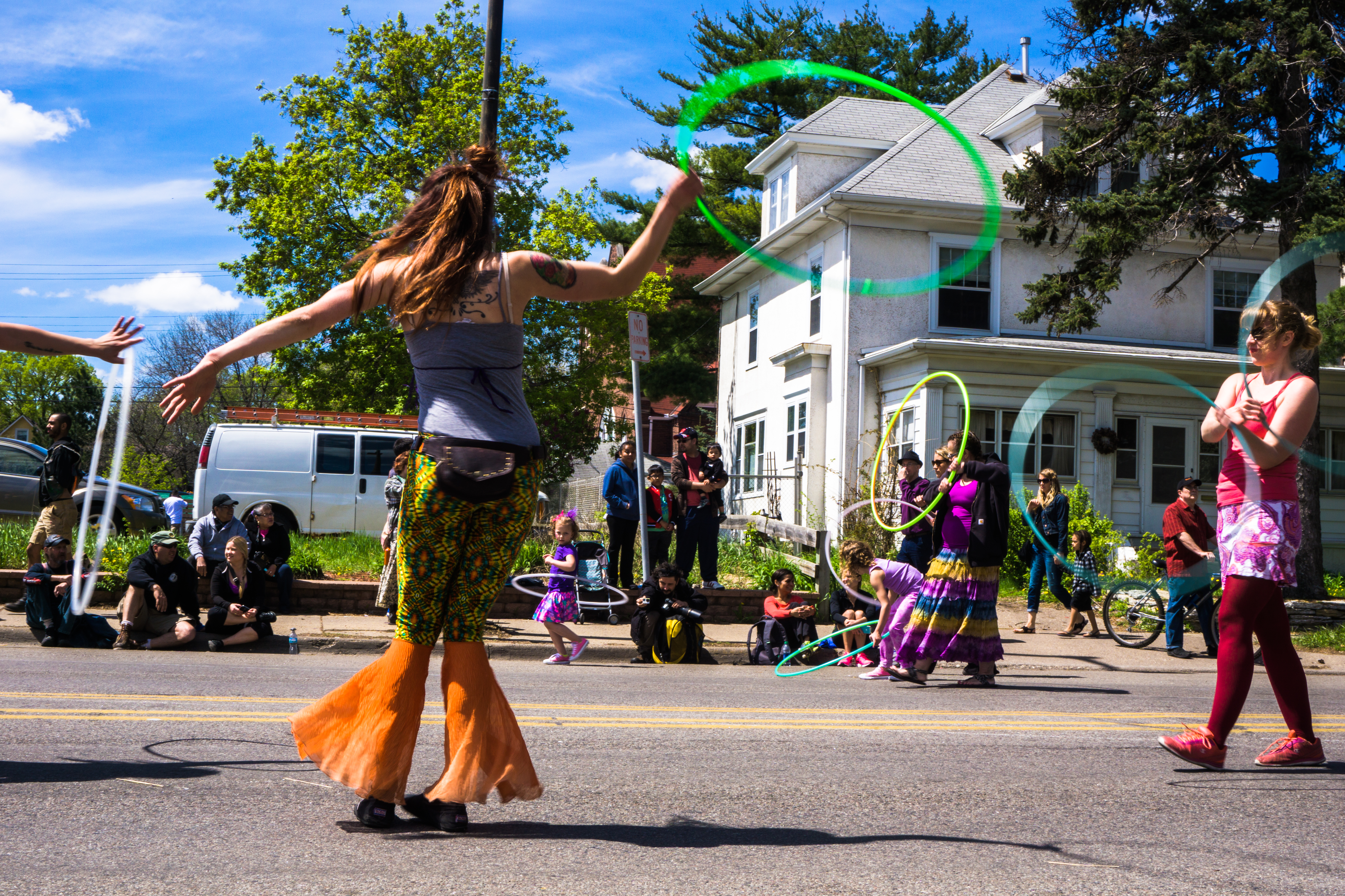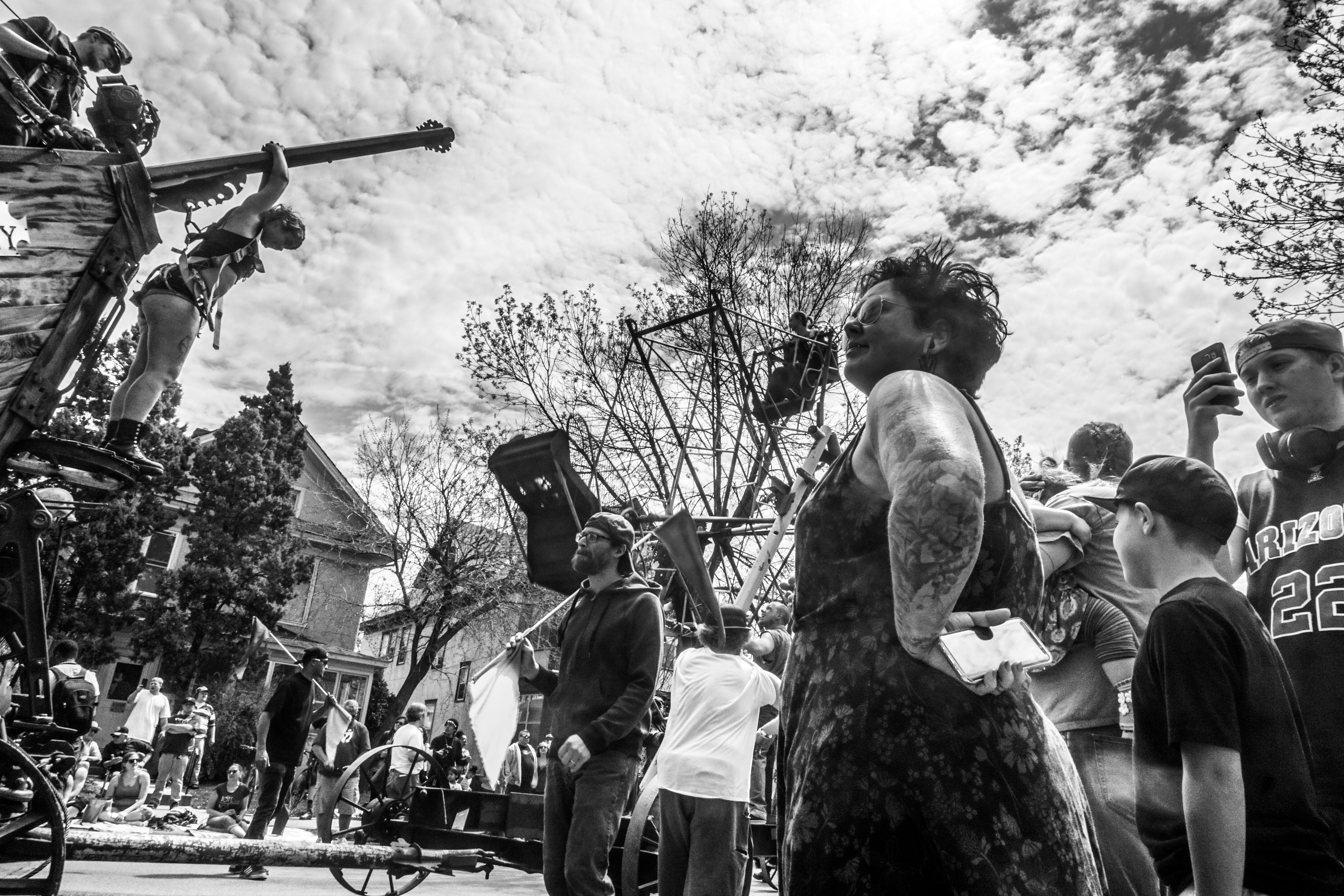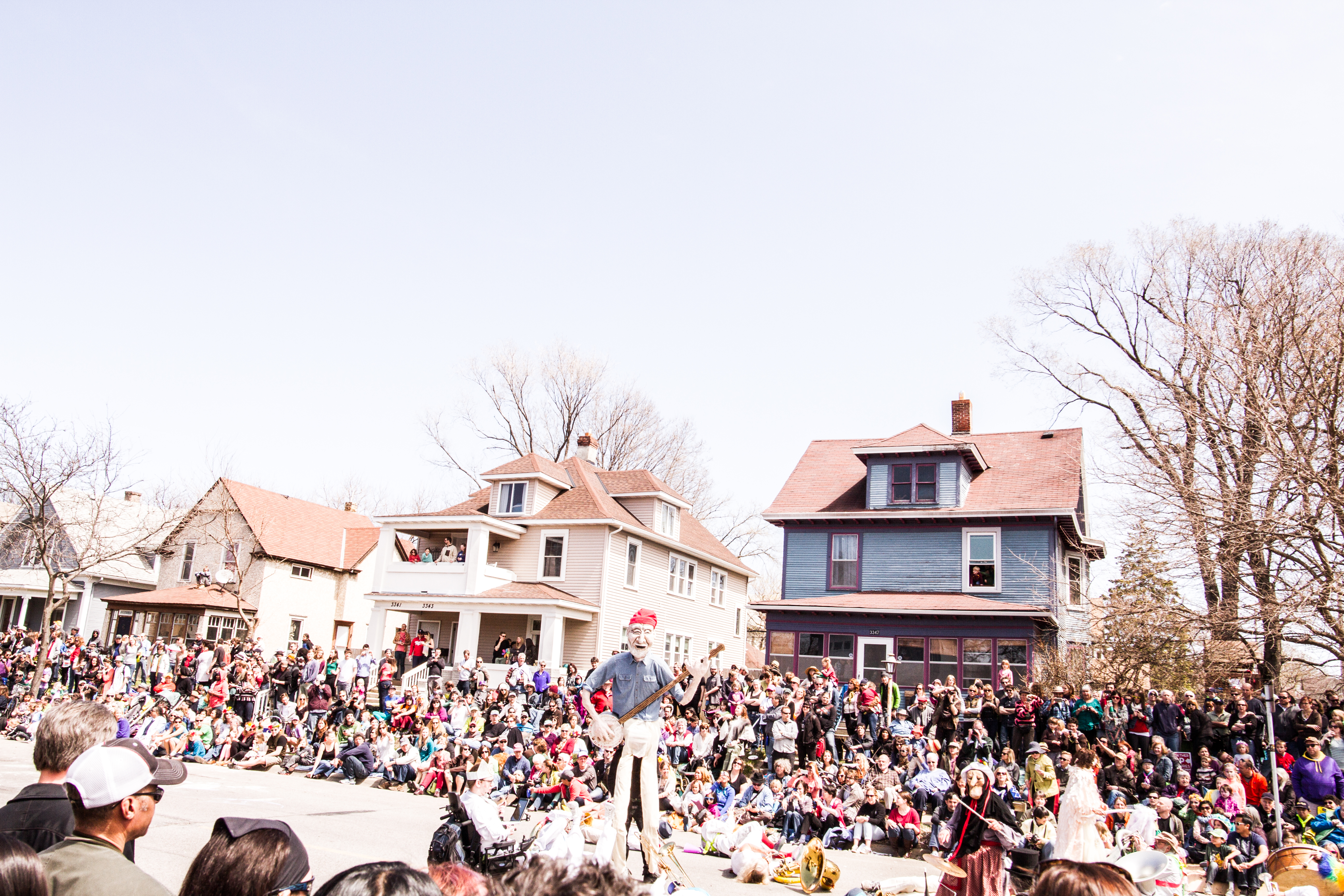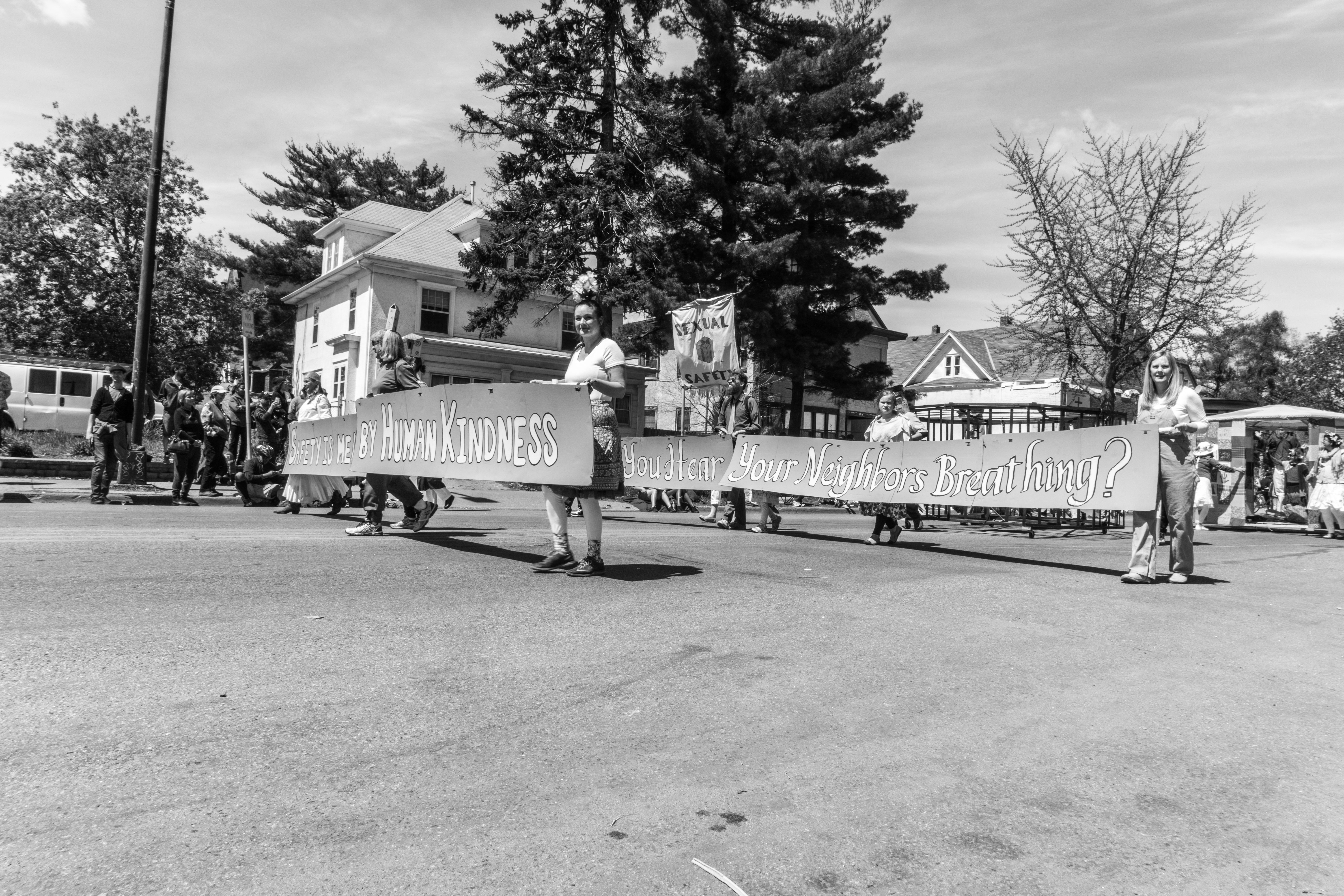You will see some galleries below of photos from each year’s MayDay parade. One thing you will probably notice is that although these photos are capturing the social messages and the getting together of the local community, they also focus on specific individuals, the role they play as part of the parade, and their interactions with others in their immediate surroundings.
